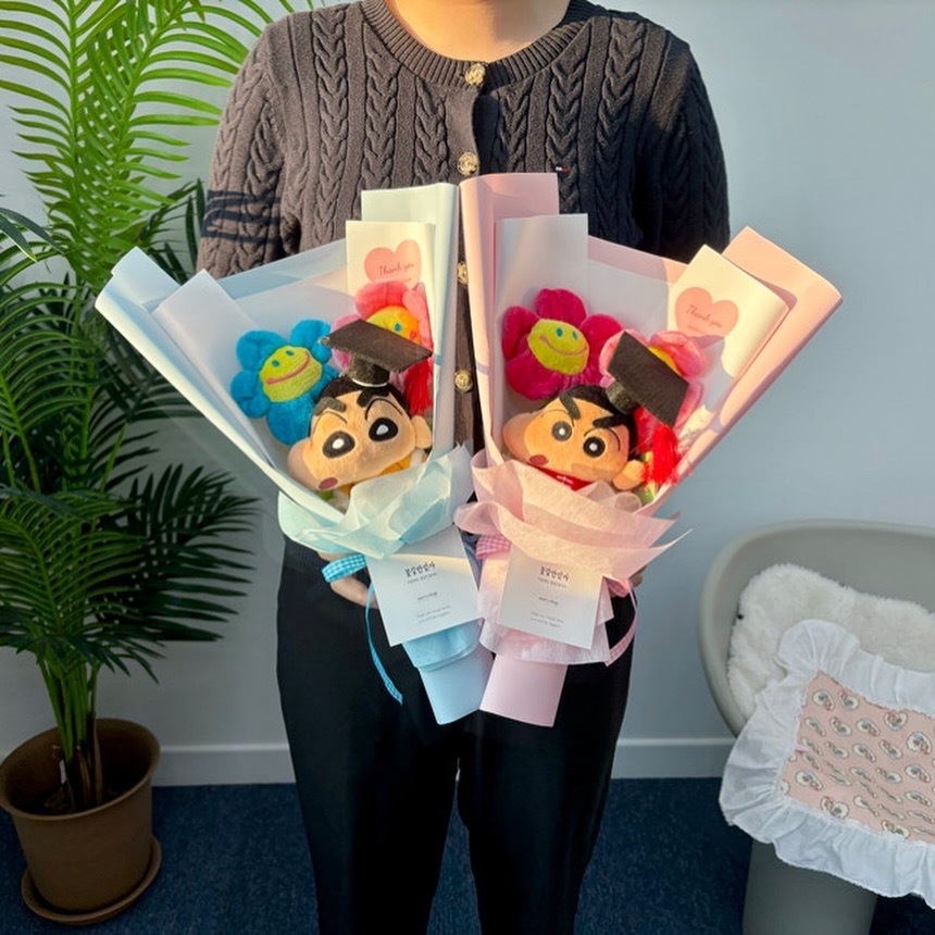 一束包括2枝笑臉小花 + 1隻 15cm 蠟筆小新 韓版正版鎖匙扣公仔 🧸