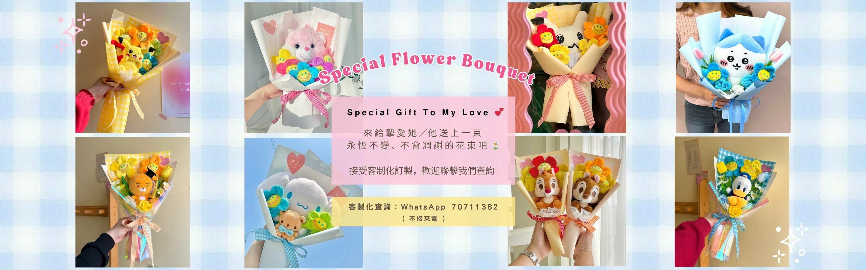 接受客人自備公仔 / 代訂公仔 / 配色設計製作客製化花束 💐