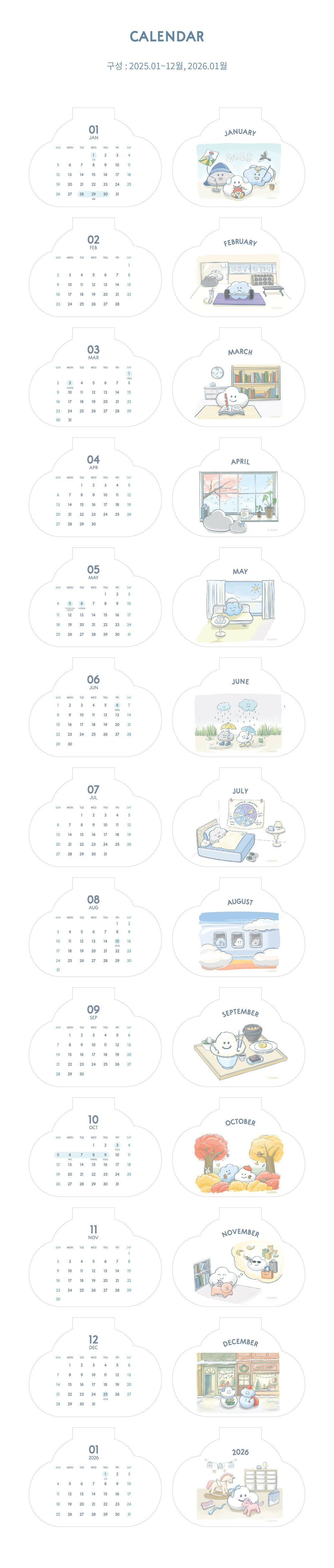 * 此款為韓版月曆,將標示韓國公眾假期為主喔!🫶🏻